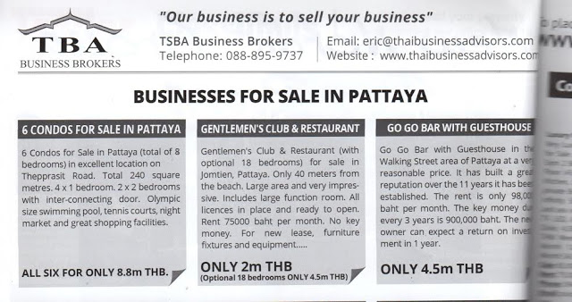 “Eric Meadows working in Pattaya as a TSBA Associate Broker works under his own limited company and is authorized to use the TSBA Brand Including logos and has also the right to use our new lead generating and listing site for TSBA which is called TBA (www.thaibusinessadvisors.com)”