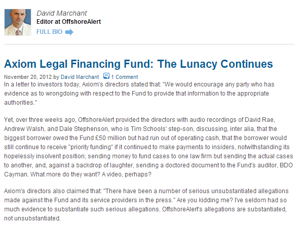 But by late last year David Marchant at Offshore Alert was pointing out that Axiom was operating nothing more than a ‘Ponzi’ scheme, specifically that when they were paying out they were paying out from new investors’ money.