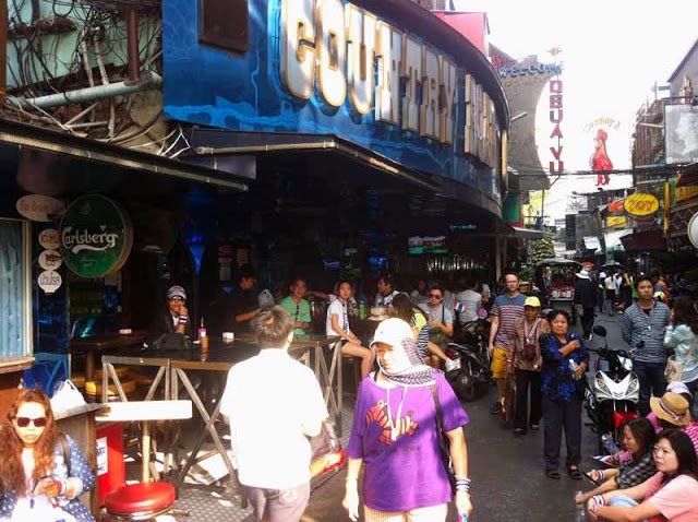 Anti-government protesters nip into the Country Roads in Soi Cowboy  for a pint or two
